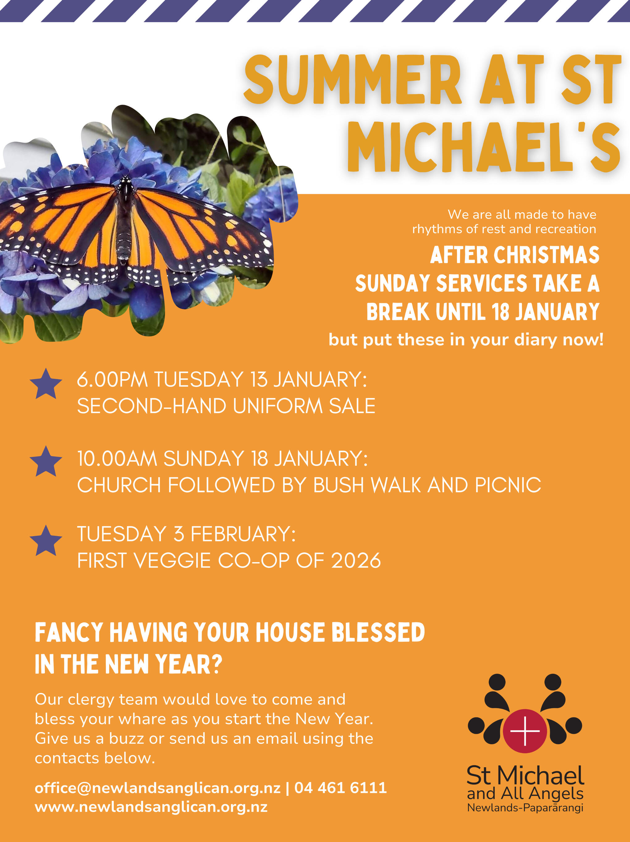 Start the day in prayer for the people, places, and situations on our hearts.If you'd like to talk to someone about our worship services, or any other ways you can be involved in the life of St Michael's, please get in touch with Rebecca or Richard, our Co-Priests in Charge, at vicar@newlandsanglican.org.nz.